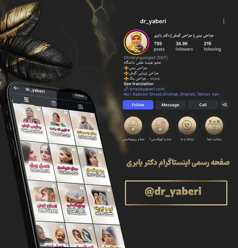 دکتر راضیه یابری محمد یکی از بهترین و خبره ترین جراحان و متخصصان گوش و حلق و بینی در تهران هستند که تحت نظر جراحان بزرگ و کارکشته ای آموزش دیده اند و توانسته اند با به دست آوردن تحصیلات برد تخصصی از دانشگاه تهران ، بیش از 15 سال در زمینه عمل های زیبایی گوش و بینی فعالیت داشته اند. دکتر یابری بهترین جراح گوش و بینی تهران ، از اصول خاصی تبعیت می کنند که همین موضوع باعث می شود ایشان زمان قابل توجهی را صرف افزایش مهارت های جراحی گوش و بینی و بهبود عملکرد های خود کند و در نهایت به یک پزشک مجرب و متبحر در زمینه جراحی های زیبایی صورت تبدیل گردد. ایشان برای ارائه بهترین و با کیفیت ترین خدمات همواره زمانی را برای کسب اطلاعات بیشتر در حوزه تخصصی خود ، اختصاص می دهند. دکتر یابری یکی از بهترین و متبحر ترین جراحان گوش و بینی تهران می باشند که تا کنون عمل های زیبایی موفقی را در زمینه های مختلف گوش ، حلق و بینی داشته اند. برای مشاهده نمونه کار های ایشان می توانید به گالری تصاویر سایت مراجعه کنید. از جمله خدمات ارائه شده توسط ایشان می توان به موارد زیر اشاره کرد.